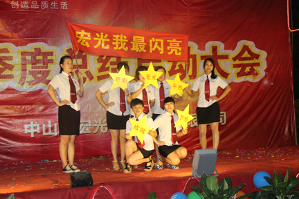 俗話說的好:凝聚產(chǎn)生力量,團結(jié)誕生希望!宏光照明一直倡導(dǎo)“快樂工作、快樂生活”的宗旨和理念。平時大家都忙于工作,公司希望通過各種文藝匯演活動,充分調(diào)動員工的積極性和能動性,豐富并充實員工的業(yè)余生活,使員工在輕松、愉悅的氛圍下工作、學習。這樣不僅有利于員工的身心健康,更有利于提高大家的工作效率。黃總表示,全體宏光人都是家人的一份子,有了大家的付出才成就了我們公司的今天;表揚先進,鼓勵后進,是公司企業(yè)文化的一部分,只要大家努力,公司都會盡最大努力為大家提供一個良好的發(fā)展平臺。