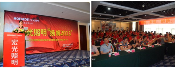 2013年6月19-6月20日,宏光照明駐河南優(yōu)秀經(jīng)銷商會議暨家居LED新品推廣會在鄭州清華憶江南溫泉酒店勝利召開。出席本次會議的有宏光照明總經(jīng)理黃亮竣、營銷副總董小芳、營銷總監(jiān)于喜慶、河南省燈飾協(xié)會副會長兼金泰來燈飾廣場總經(jīng)理張雙來、河南物流運營中心李少杰以及來自中原大地的100多位優(yōu)秀經(jīng)銷商。