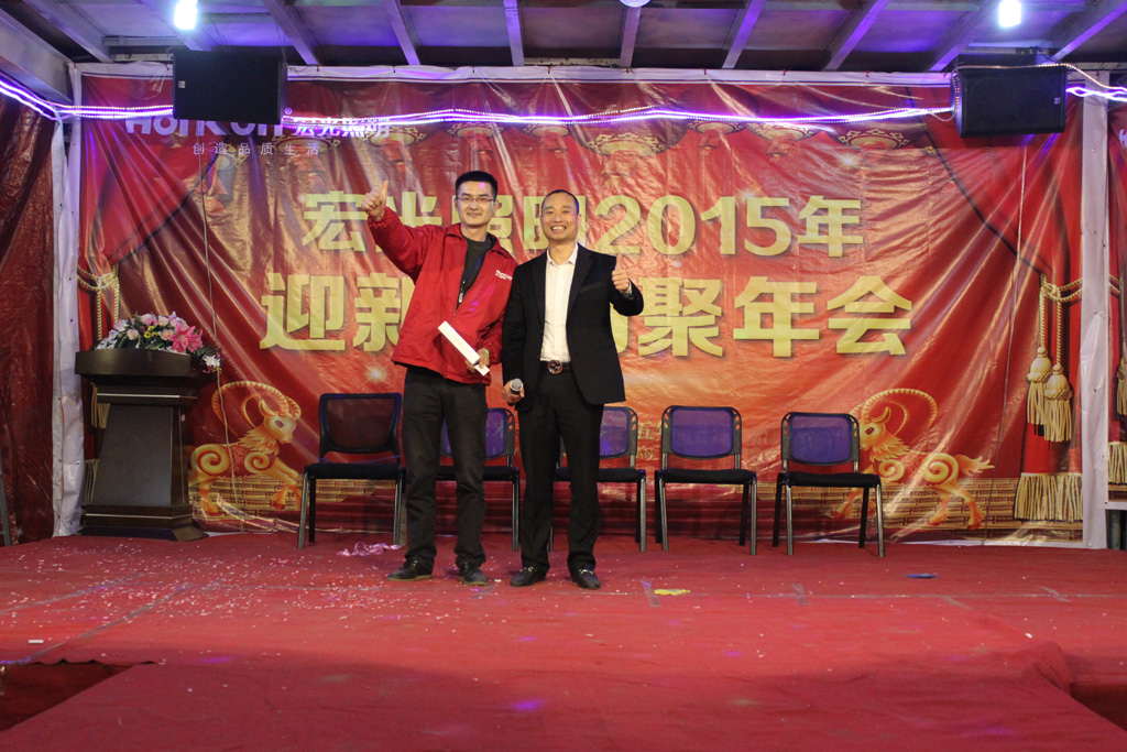 本次年會精彩紛呈,宏光精英們美輪美奐,熱情奔放,激情四射的表演給現(xiàn)場的領(lǐng)導(dǎo)、嘉賓和全體員工帶來了一場震撼的視覺盛宴??偨?jīng)理黃亮竣先生、副總經(jīng)理黃權(quán)國上臺致新年賀詞!黃總回顧了宏光2014年的心路歷程,肯定了2014年所取得的輝煌成績,宏光一步一個腳印,一年一個新高度!他說“宏光的發(fā)展,離不開一線員工的辛勤工作;宏光的今天,離不開供應(yīng)商及客戶朋友們的的共同努力,一份付出,必有一份回報;并對2014年度宏光優(yōu)秀員工進行表彰和頒獎! 隨后進行的個人節(jié)目,員工的才藝得到了充分的展示,詩歌朗誦,單曲演唱、創(chuàng)意小品等都給觀眾們留下了深刻的印象,贏得了現(xiàn)場觀眾和評委們的陣陣掌聲。企業(yè)文化的人文力量,可以為員工創(chuàng)造一個具有和諧的人際關(guān)系、能夠充分發(fā)揮各自能力、實現(xiàn)自我價值、具有豐富多彩生活的寬松的工作環(huán)境。企業(yè)文化的凝聚力能通過建立共同的價值觀念、企業(yè)目標(biāo),把員工凝聚在企業(yè)周圍,使員工具有使命感和責(zé)任感,自覺地把自己的智慧和力量匯聚到企業(yè)的整體目標(biāo)上,把個人的行為統(tǒng)一于企業(yè)行為的共同方向上,從而凝結(jié)成推動企業(yè)發(fā)展的巨大動力。
